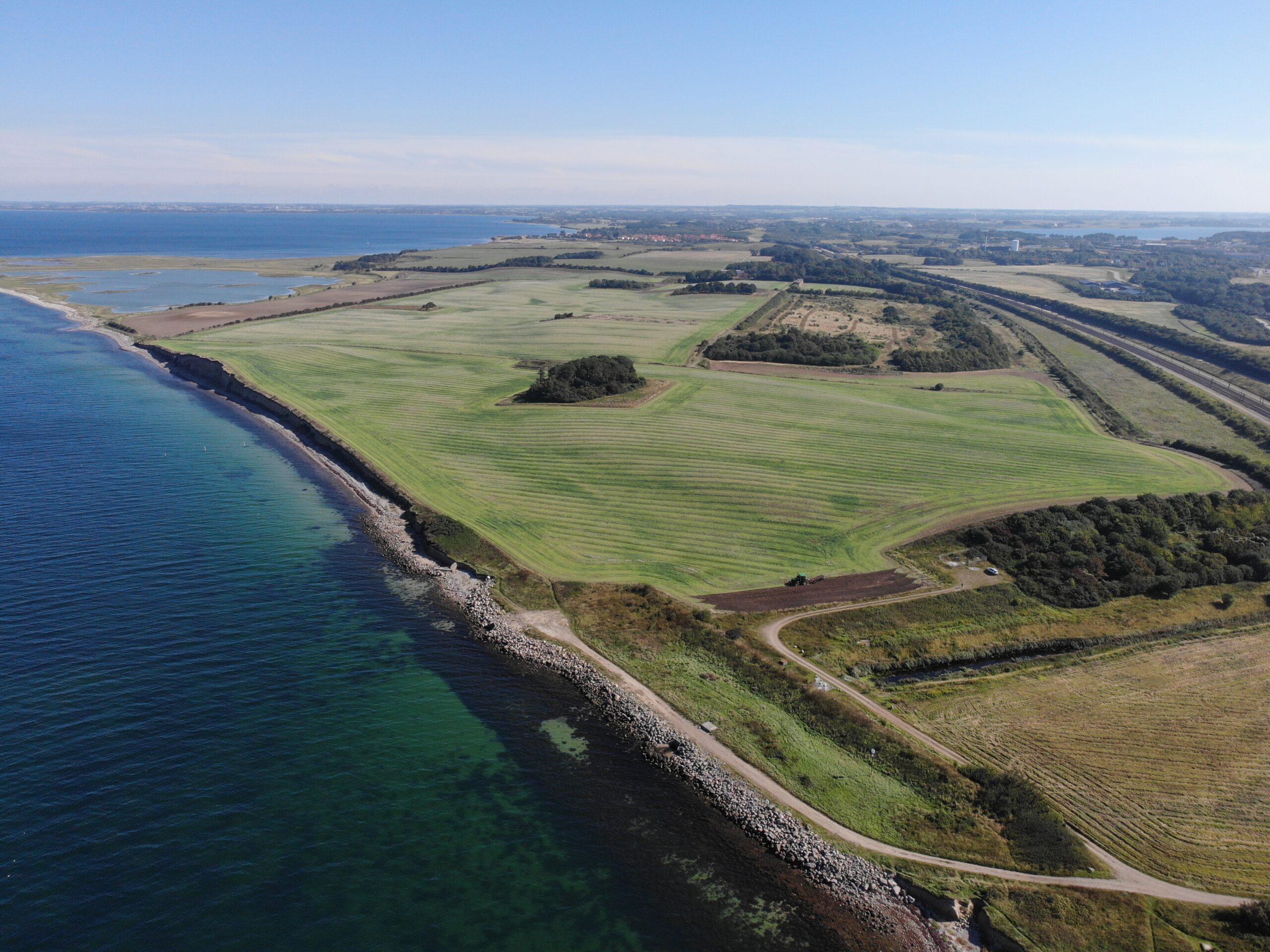 Marker er købt. Naturplan er lavet. Korn og raps er høstet for sidste gang. Og nu har en traktor med en plov sat skub i en stor naturgenopretning af det nye naturområde Storebælt Klint lige ved Storebæltsbroen.